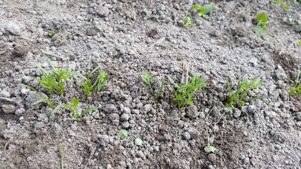 ハウスに撒いた人参の草取りです。暖かくなってきて、人参より草の成長が早いので大急ぎで。