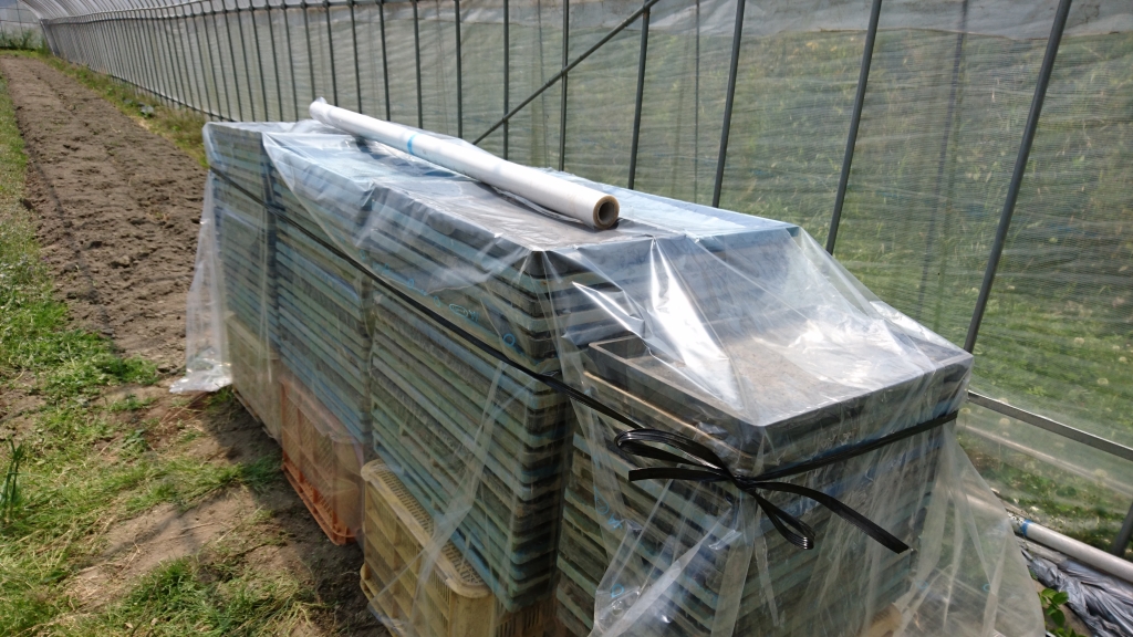 お酒になるアキツホの籾まきをしました。いつもは1~2人なのですが、助っ人さんたちのおかげでゆったりやれました。この後ハウスに積んで芽だしをします。