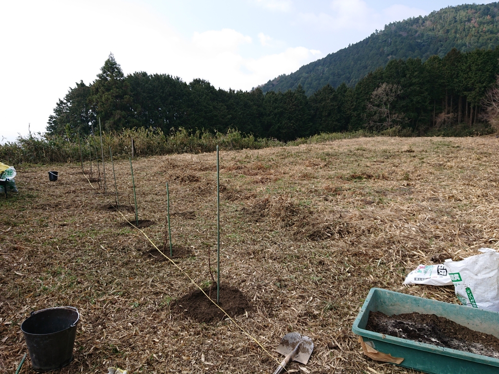 酒米、蕎麦ときて、次なるはワインになるブドウ。クリーンナップした20aの放棄地が、数年後にブドウ畑になります。奈良県初のワインである木谷ワインとして加工し、うちで販売します。
