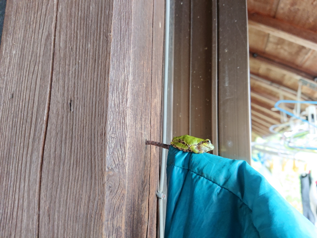とんでもなく風が吹き、前日定植したトウモロコシのマルチがぶっ飛ぶ。風雨のなか、やり直すのに骨が折れました。さらに、雨の合間に畑に出ていたら鍬を折るし…なぜそこに?のカエルを見て、慌てない余裕が必要だと休みにしました。