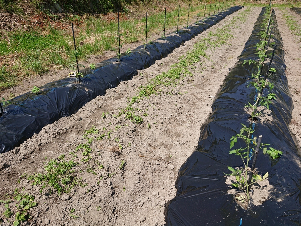 蕎麦の後作に、トマトソース体験用のトマトを植えました。体験メニューを作ってゆく第1弾。トマトの間にはバジルを。トマトソースの材料は、料理用トマト3種、バジル、いい塩です。