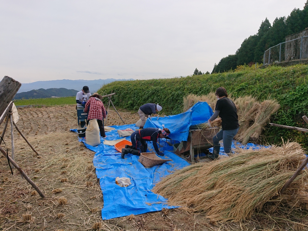 雄町を脱穀