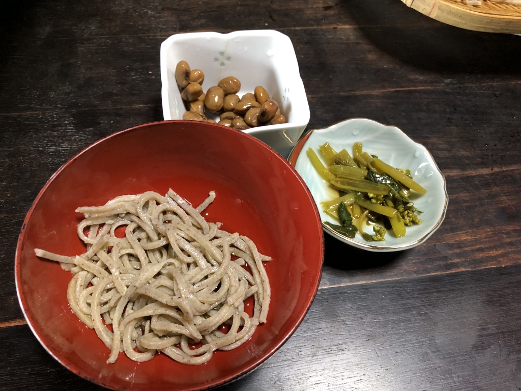 今は花わさびの時期。醤油漬けにして、自家製蕎麦と。最高に相性がよいです。いつか蕎麦屋を開いたら、メニューにあがるでしょう。