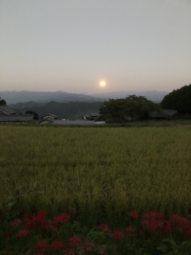 月か上がってきたので写真を撮ると、なんかやたら月が明るいと思ったら中秋の名月でした。満月ですね。来週はいよいよ稲刈りです。