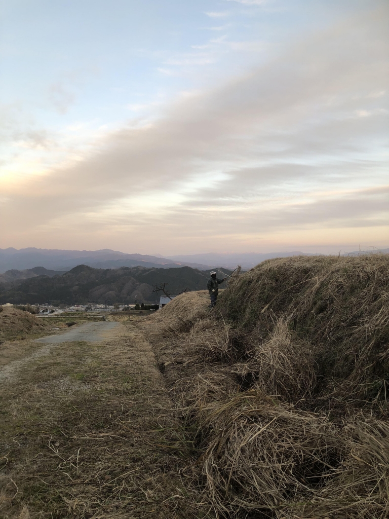 来月になるとさらに温まり、農作業も本格化します。それまでに様々な準備をします。まずは田畑の草を集めて堆肥にします。こうして草を集めるのは、うちくらいでしょう。