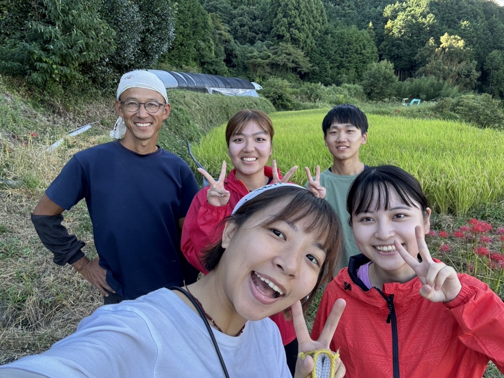 大学の後輩、と言っても親子ほどの差がありますが。毎月、援農に来てくれる彼らも、3回生で引退、就活です。今日は最後の日。里山で学んだことが人生に活きることを願います。