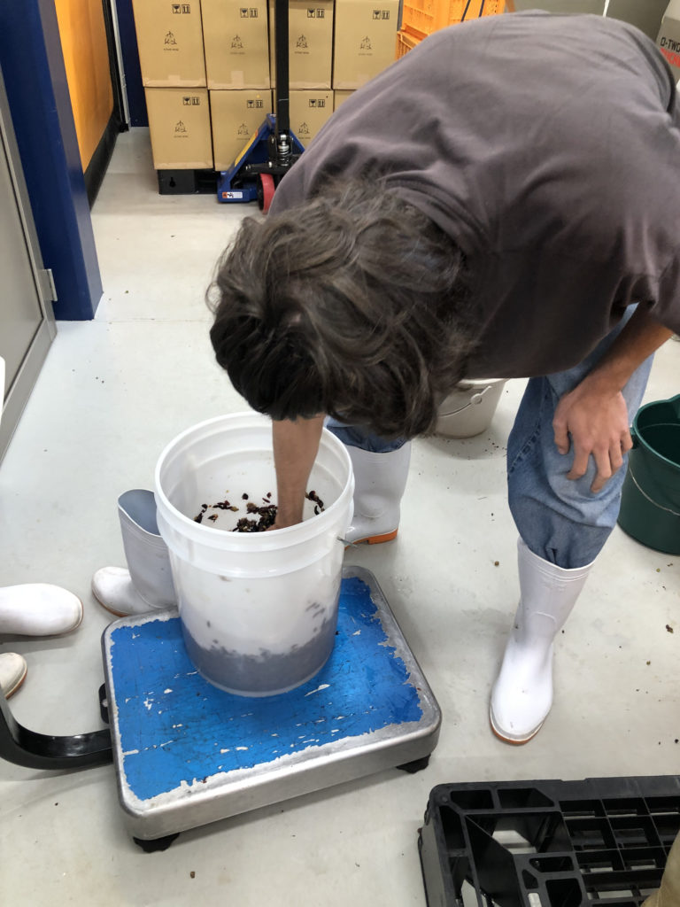 身を外し、手で潰すところまでをボランティアのミカとラファエルと行いました。葉っぱが少ないために、緑の実が多くて困りましたが。出来上がるワインは少ないですが、来季に向けて少しでも作ることが大切です。来季は良いブドウを作るぞ。